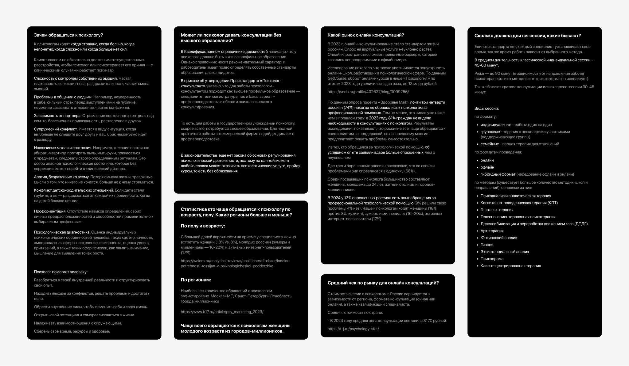 Провели дискавери, чтобы изучить рынок консультаций и сформировать первичное понимание кто может быть нашим клиентом в приложении